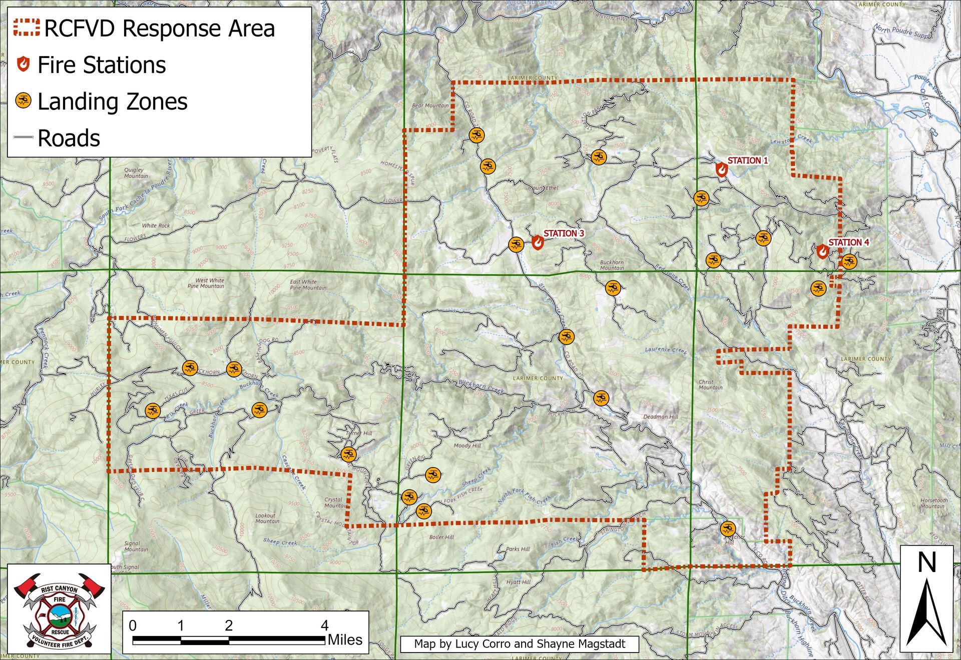 Station 4 burned down in the High Park Fire in 2012, and was rebuilt in 2014. It is a simple garage with room for 2 trucks in its bays. Station 4 is located at 109 Ridge Row Drive.
